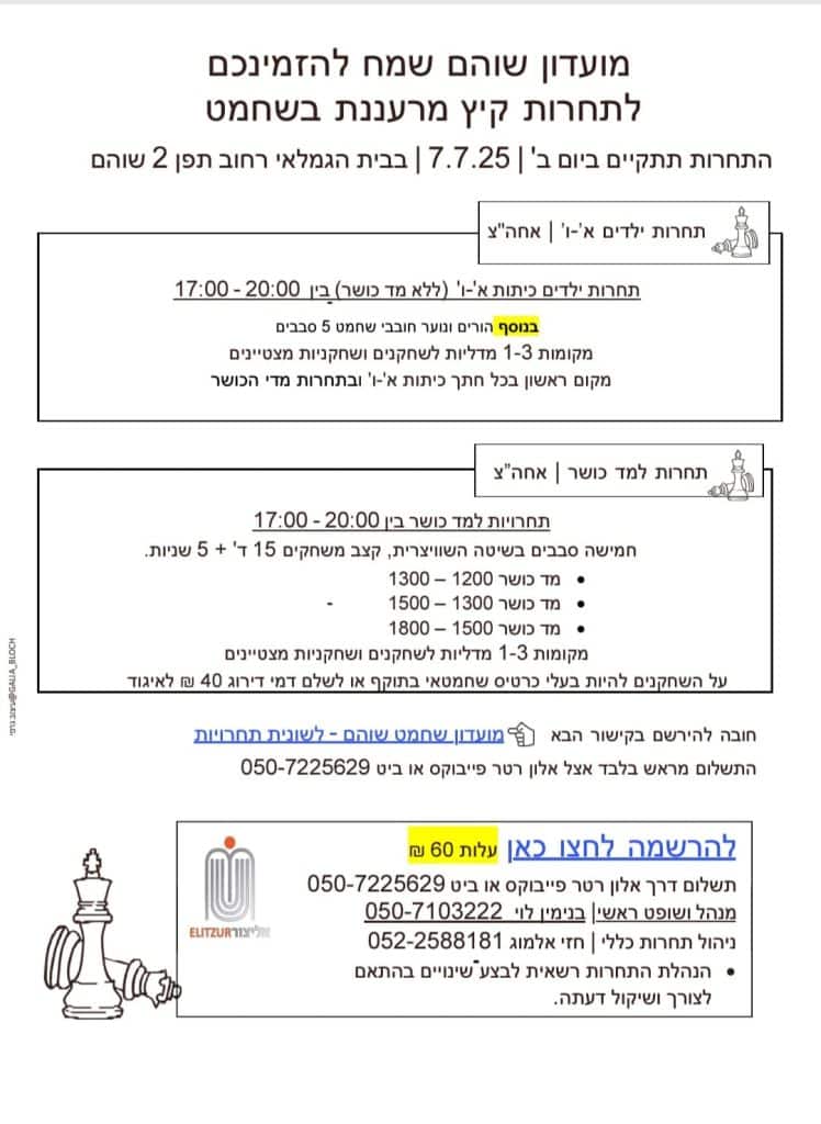רישום לתחרות קיץ יום ב' 7-7-25 בשוהם בשעה 17:00
